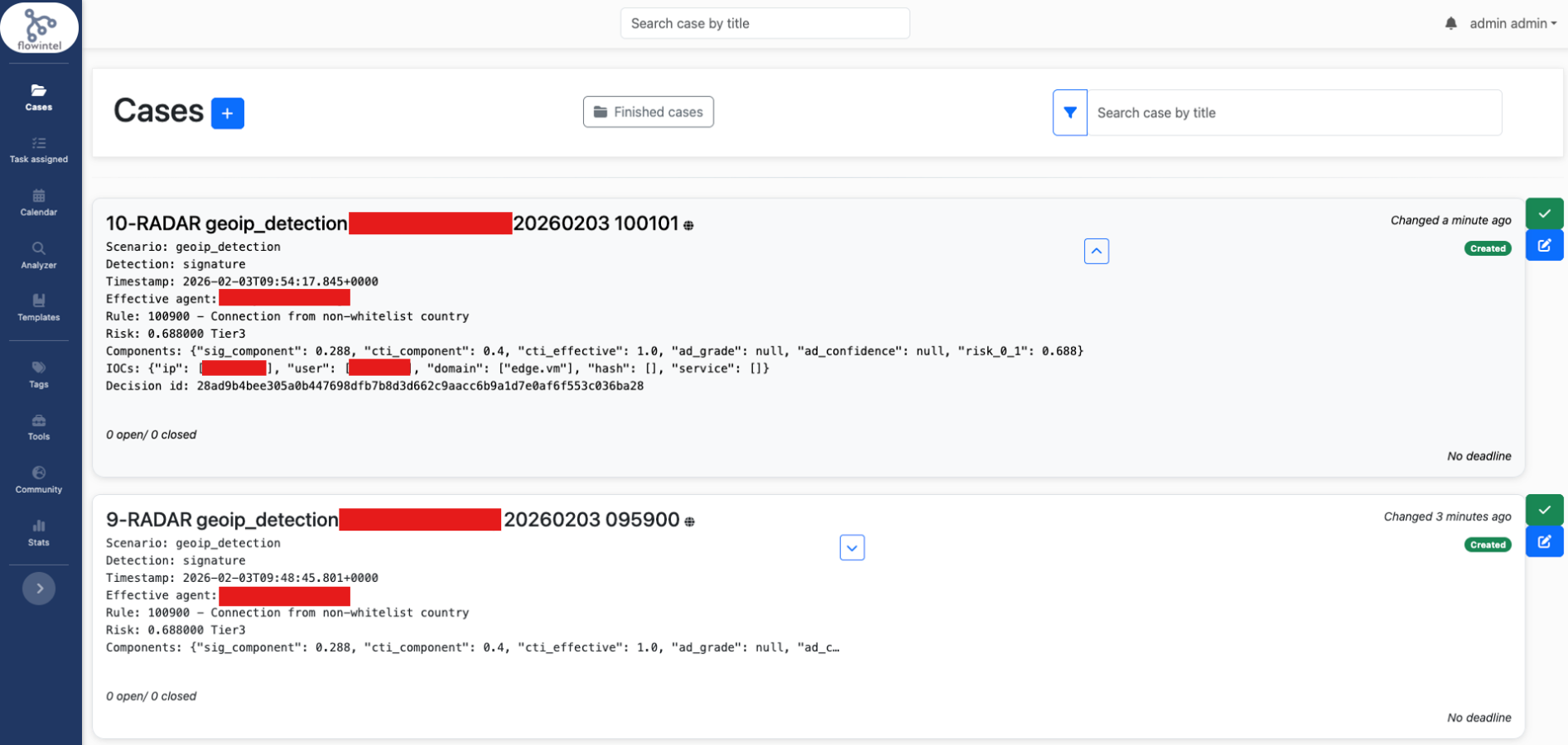 2.19 TCER: RADAR non-whitelist GeoIP detection + Flowintel TRB-026